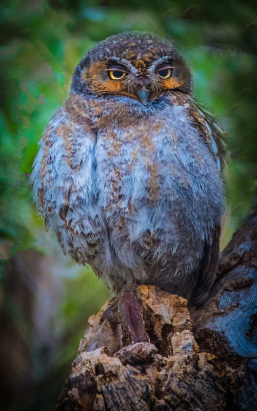 Мама. Обратите внимание на глаза: один в тени, другой освещён солнечным лучом. Поэтому зрачки разного размера. Вопреки распространённому заблуждению, совы прекрасно видят днём.
