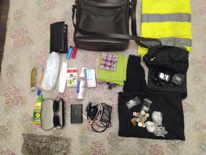 Сумку взял из машины с собой. В сумке, в числе разных нужных вещей, был рабочий планшет с блютуз-клавой, дорогие беспроводные наушники, паспорт, документы на машину. Ну и всякая шелуха.