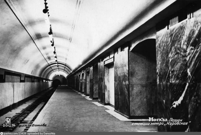 Станция "Кировская" (позднее "Чистые пруды") была построена по английскому типу. Здесь не было центрального зала. Только боковые платформы и небольшое пространство, через которое пассажиры проходилина эскалаторы, а затем на поверхность.