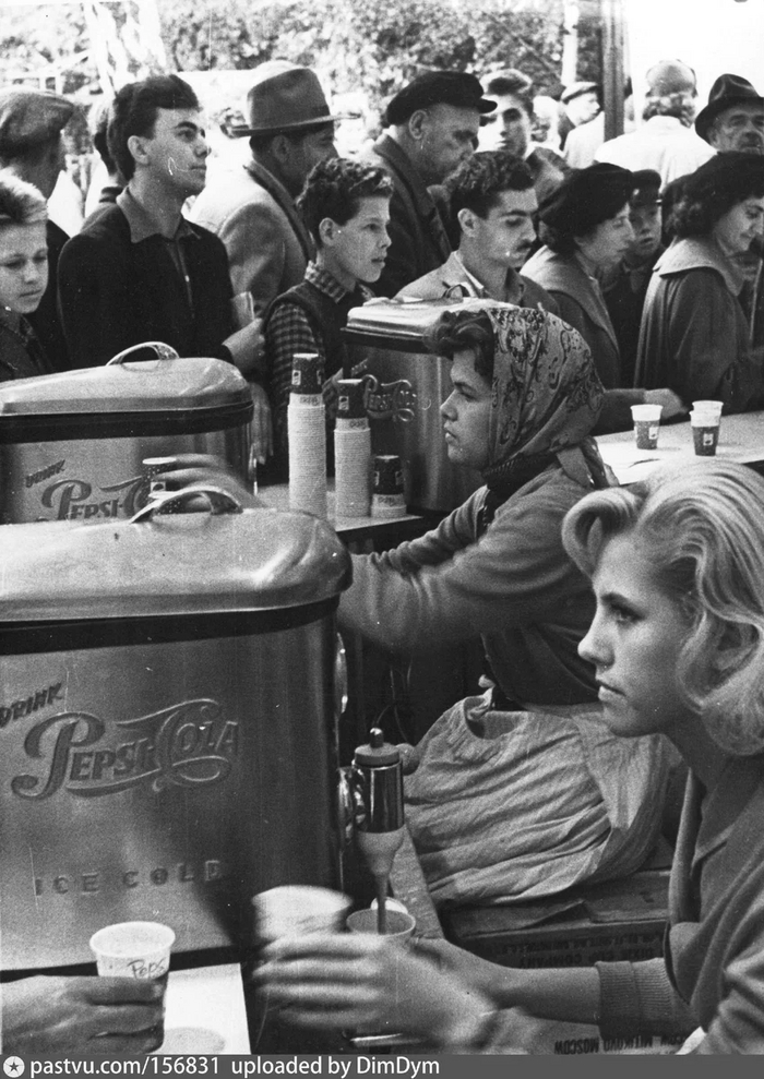И конечно она, "Пепси -кола", загадочный заморский напиток. На выставке была организована бесплатная дегустация. Отзывы были разные. Москвичам по началу газировка не понравилась. Некоторые даже говорили, что её вкус напоминает нефть. Почему? Загадка. Однако через пару десятилетий "Пепси-кола" станет одним из самых желанных напитков для советских людей.