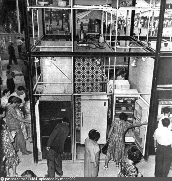Хрущевская "оттепель" способствовала невиданному культурному обмену. Так, в 1959 году открылась экспозиция СССР рядом с Центральным парком в Нью -Йорке. А затем прошла американская выставка в Москве. В парке Сокольники , между 3-м и 5-м Лучевыми просеками построили несколько новых павильонов. Демонстрировались прежде всего невиданные в Советском Союзе блага повседневной жизни.