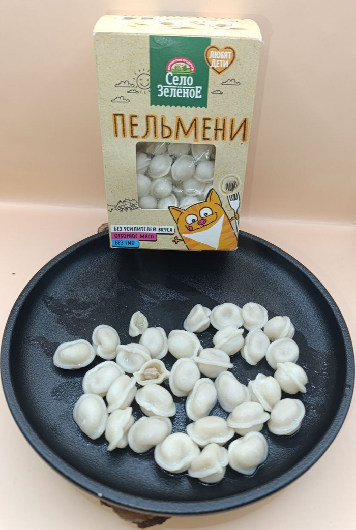 Впервые вижу не молочный продукт от "Село Зелёное", это пельмешки для детей, они оооочень маленькие, но слеплены хорошо, ни одна при варке не раскрылась. Плотное хорошее тесто, в мясе чувствуется заявленные свинина и говядина, но так как продукт для детей, там нет приправ, то есть вкусные пельмени без соли и перца. Это не беда, можно сделать соус под свой вкус и наслаждаться тестом в мясе, рекомендую.