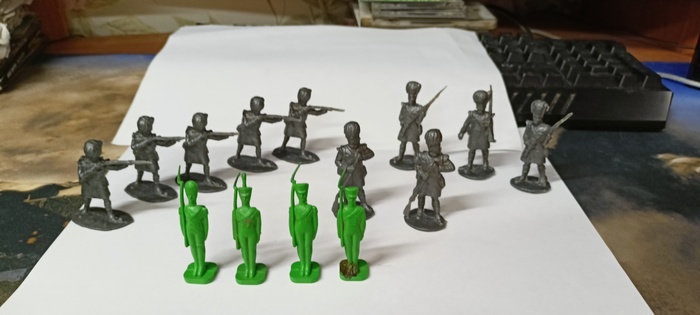 Прикольный набор из 44 пластиковых солдатиков для игры в 'войнушки'. Кто помнит такие игрушки? Половина из них имеет другой цвет. Ссылка на комплект