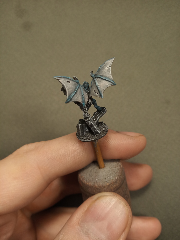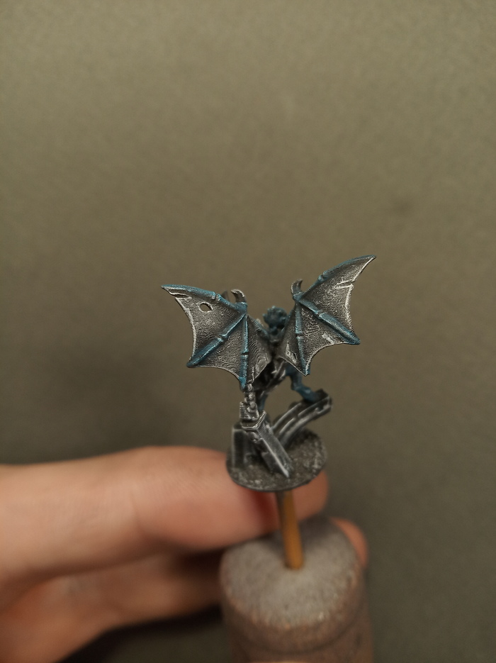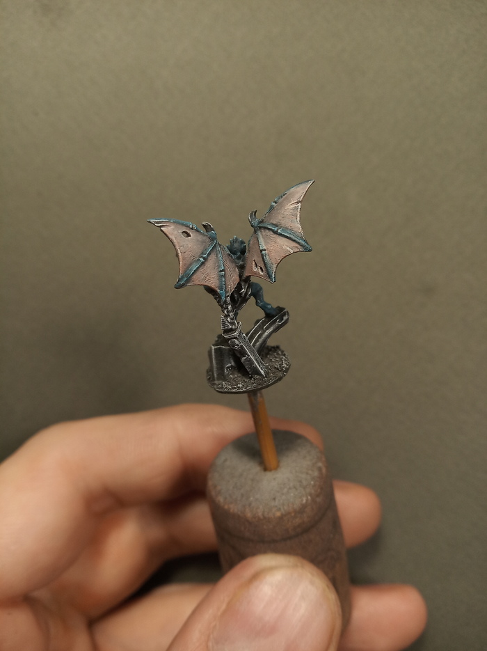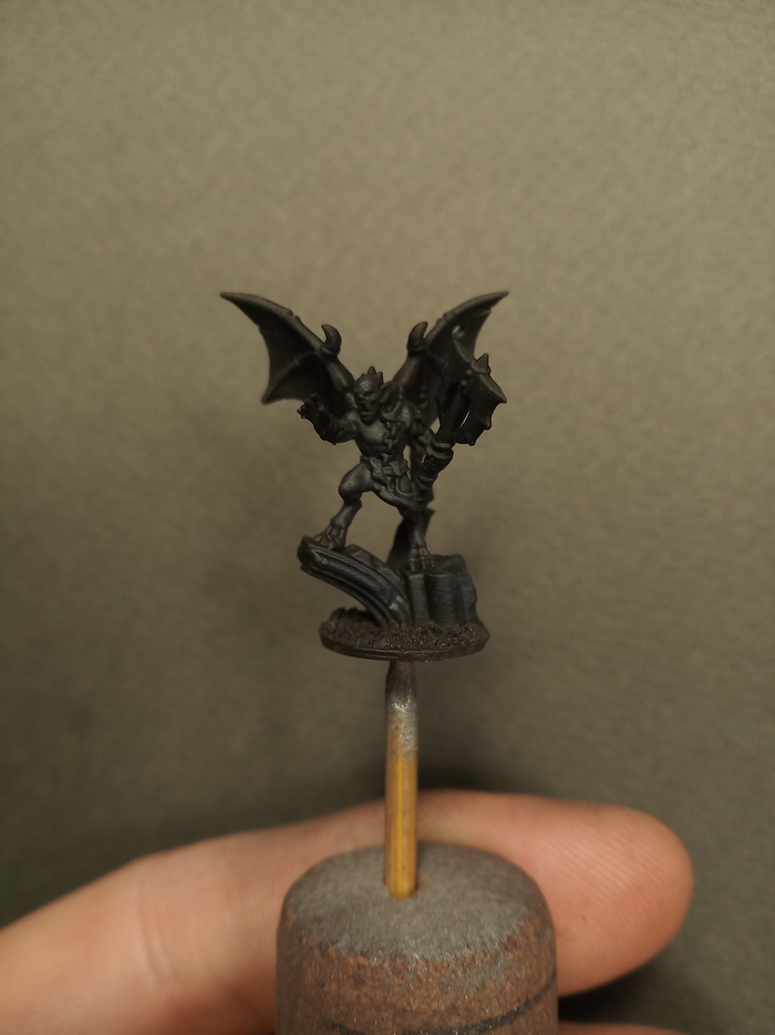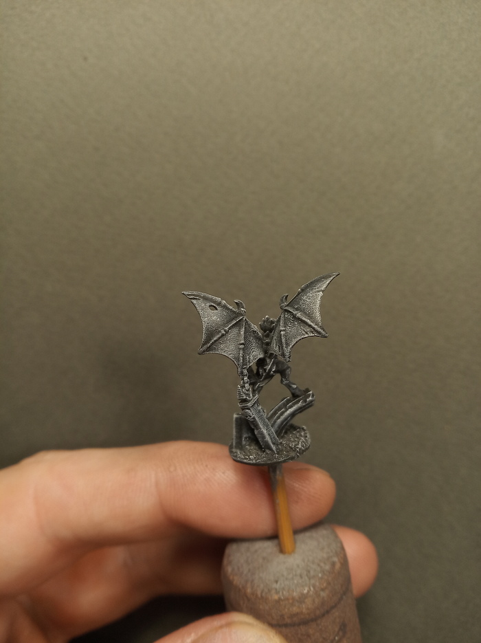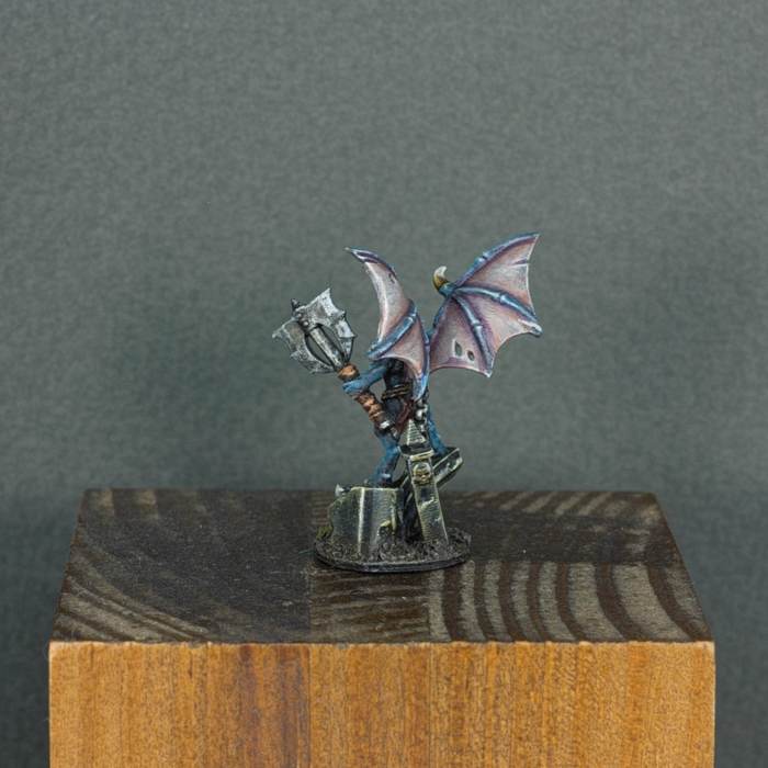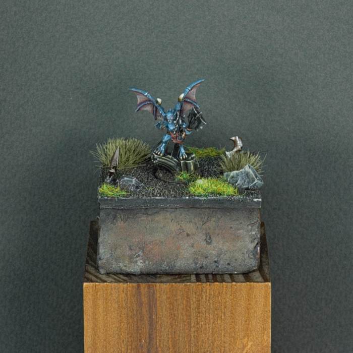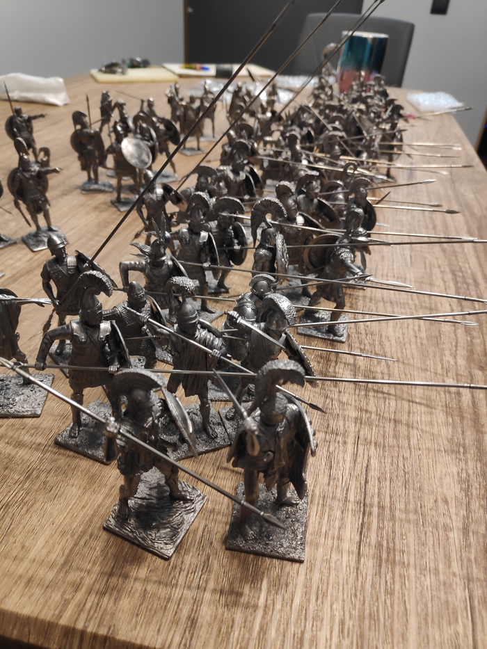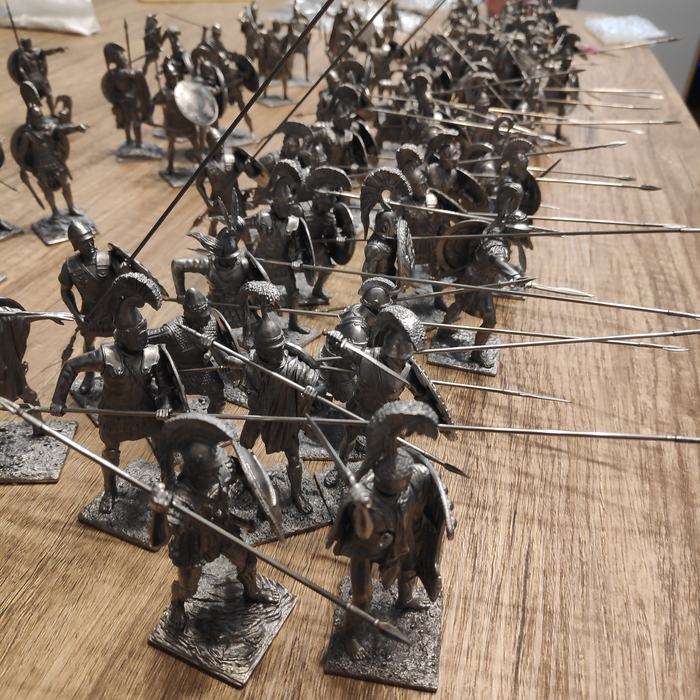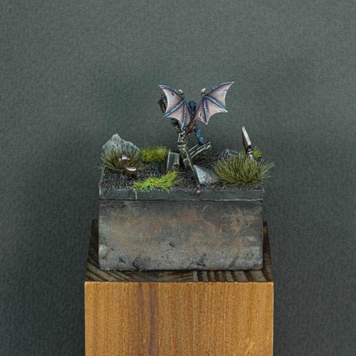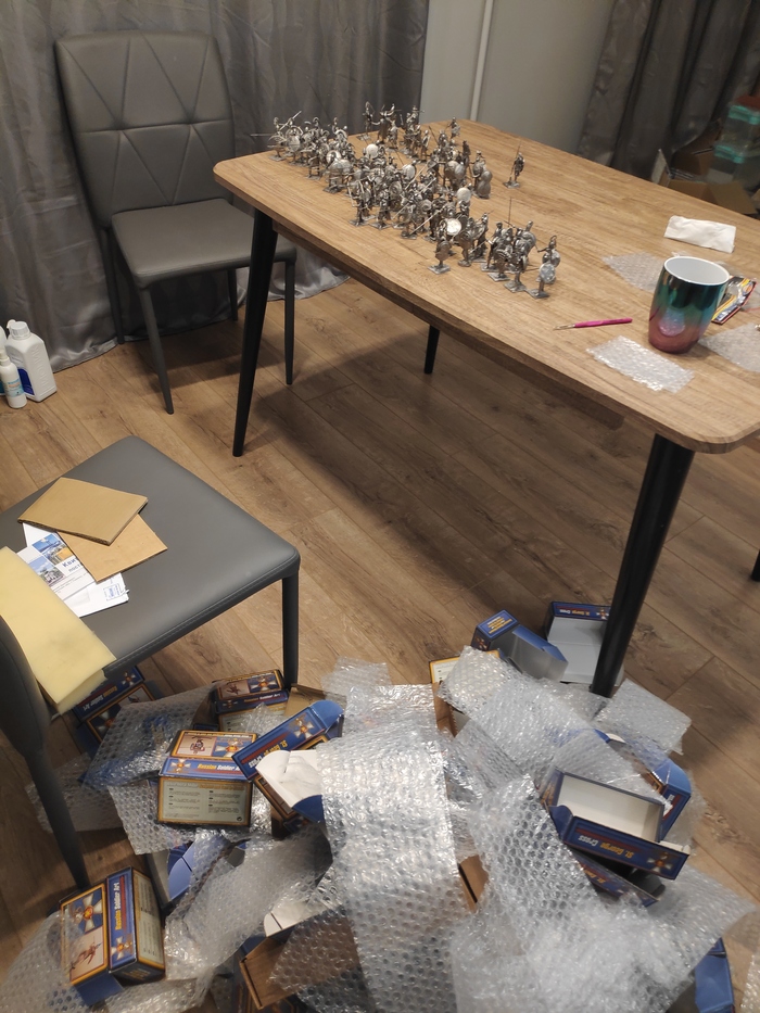 Вождь одного из племен, проживавших на территории современной Дании в церемониальном облачении (несколько таких шлемов было найдено в Дании, причем в неплохом состоянии). О языковой принадлежности этих народов мы не узнаем никогда, поскольку они были уничтожены, в том числе знаменитым Гаем Марием. Масштаб - чёткие 54 мм, металл. Фигурка фирмы Leonhard Miniatures. Роспись акрилом и маслом. В качестве подставки использован не самый распространённый в наших кругах материал - приличный кусок серого облицовочного гранита. В этом есть свои плюсы: как-то в очередной "схватке" "металлистов" и "смолянистов" прозвучало, что когда фигурка тяжелее основания, то за неё постоянно трясёшься при покраске, чтобы ненароком не опрокинулась, потому что чинить металл посложнее, чем смолу. Ну в данном случае полный порядок - основание в разы тяжелее самой миньки. При сборке оказалось, что между тушкой и куском плаща образуется зазор более 3 мм. Вот тут жидкую "зелёнку" от Цитадели я оценил по достоинству! Помучиться, конечно, всё равно пришлось, но в итоге она справилась на все 100%!
