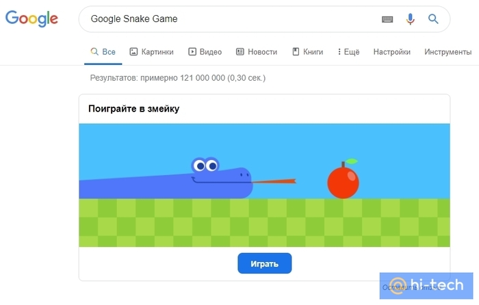 Поиграть в нее проще простого: в поиске Google наберите змейка или snake. На первом месте поисковой выдачи и окажется игра. Управлять змейкой можно с клавиатуры.