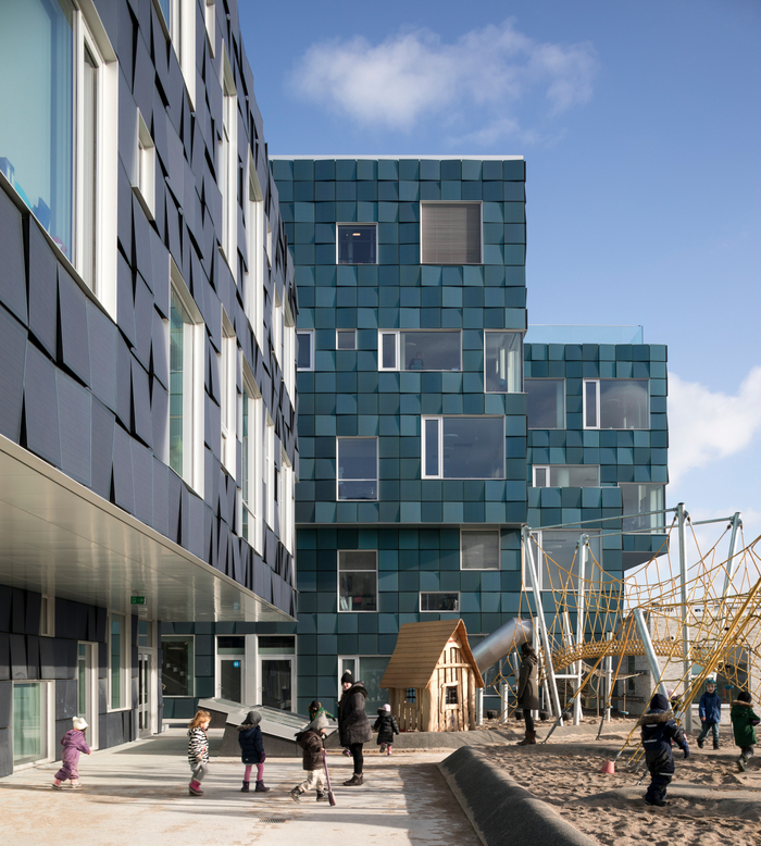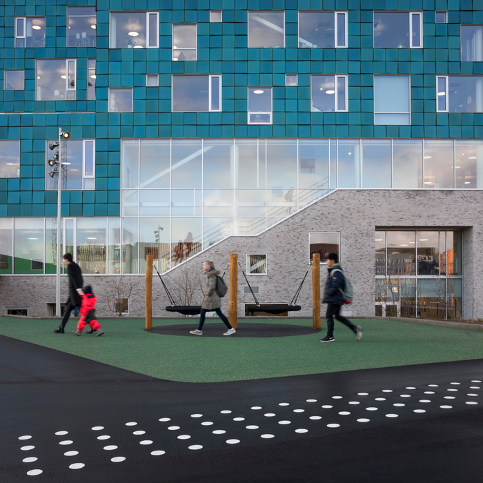 Эта школа в Копенгагене производит половину своей энергии сама — за счет фасада! Здание Copenhagen International School (CIS Nordhavn) покрыто 12 000 солнечных панелей, каждая из которых установлена под своим углом. Вместе они образуют один из крупнейших солнечных фасадов в мире и вырабатывают около 700 кВт — этого хватает, чтобы покрыть половину годовой потребности школы в электроэнергии.