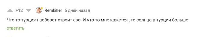 Турция занимает третье место по производству солнечных панелей в мире уступая лишь Китаю и Камбодже. В ближайшее время в производстве солнечных панелей Турцию потеснит США и Европейские страны, активно расширяющие собственное производство. Напомню Турция в 2022 году импортировала 21,6 млрд куб. м российского газа — это на 18% меньше, чем годом ранее. На поставки по трубопроводу пришлось 15 млрд куб. м сырья.