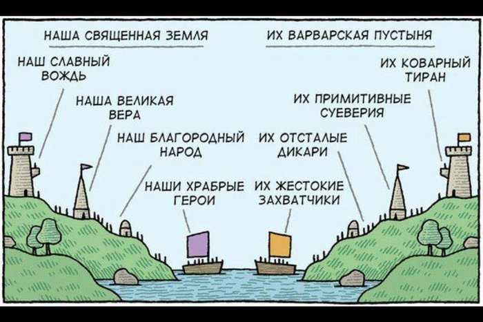 Машина пропаганды построена на обычных двойных стандартах, когда одно и то же событие можно интерпретировать и оценивать диаметрально противоположно, в зависимости от генеральной линии партии. Например доблестный разведчик - мерзкий шпион, боец за независимость - сепаратист, сильный лидер - популист и так далее. Возможно вы видели эту картинку, она и вдохновила на создание машины, а оскорбления Соловьева послужили катализатором:
