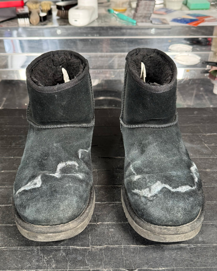 Часто такие пары приносят уже после попыток помыть их мылом. Тут всегда немного грустно. Кожа и замша мыло не любят, оно вымывает защитный жир с поверхности. Материал пересыхает и начинает трескаться. В итоге соль уже не самая большая беда.