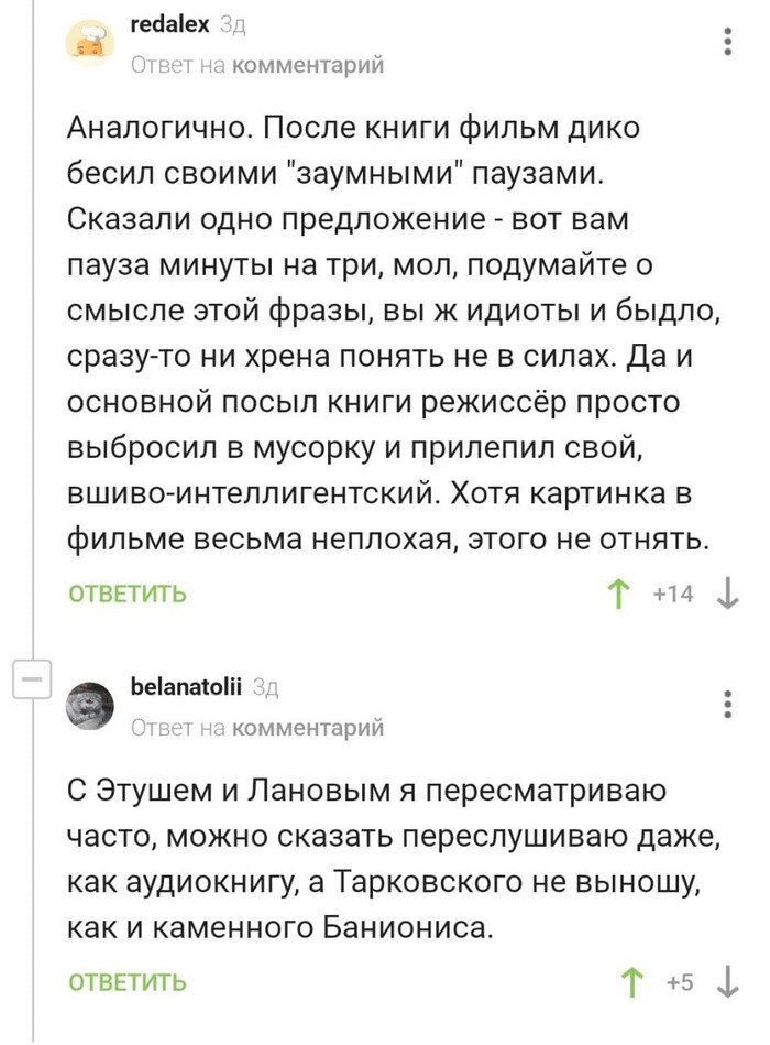 Для начала, стоит сказать, что автор книги "Солярис" Станислав Лем высказывался крайне негативно о работе режиссёра, снявшего картину по его произведению: