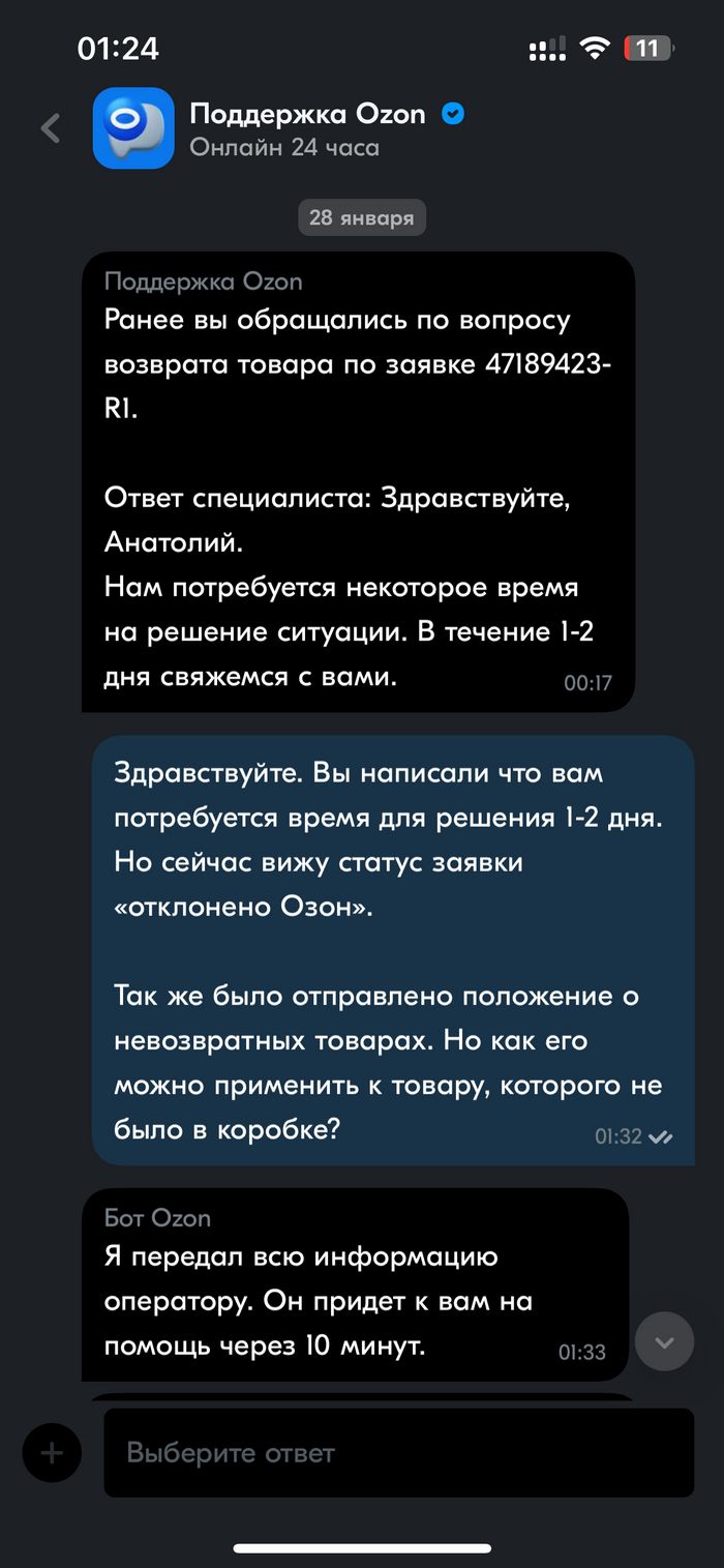 Проходит 2 дня я им опять пишу, что и как с моим обращением