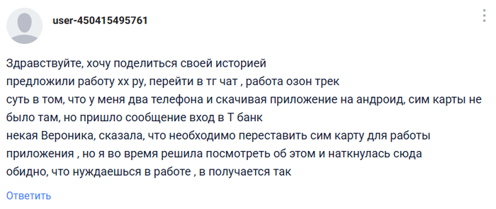 ну и банально, потом при запуске приложения оно попросит все разрешения: на возможность всегда висеть в фоне, на доступ ко всем уведомлениям, на доступ ко всем звонкам, на доступ ко всем смс... после запуска вводите туда присланный номер... приложение начинает показывать бурную деятельно будто, что то делает... спустя время попросит номер карты... и опять бурная деятельность... далее опять просит карту но уже Т-Банка... если ввести действующий номер карты, приходит сообщение от Т-Банка... далее понятно, что происходит слив ваших денюшек и если есть другие приложения банков все звонки, смс итд перехватываются, тоже происходит слив ваших денюшек, но и на сладкое сообщения от тех кто с этим столкнулся: