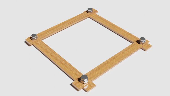 Теперь третья часть опыта, самая трудоёмкая. Возьмём собранную из деревянных реек квадратную шарнирную рамку – с не туго затянутыми винтами, то есть так, чтобы рамку можно было свободно сдвигать-раздвигать руками «в ромбик».