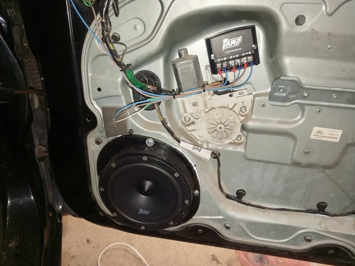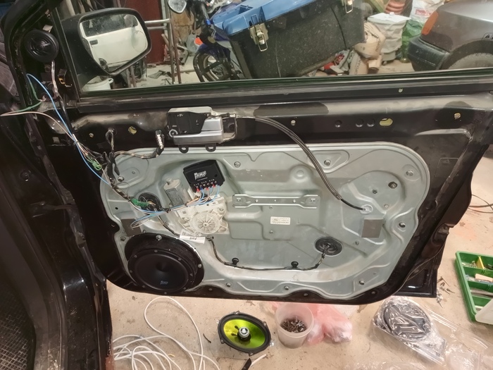 Никаких аудиокабелей из безкислородной меди я не использовал. Все это чушь и выдумки маркетологов) обычный провод и вуаля. С дверьми ещё нужно работать. Нет ни виброизоляции, ни шумки, от слова совсем. Но сейчас не до этого, да и холодно. Такие вещи нужно делать в тёплое время года.