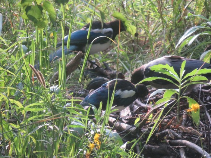 Ну вот, пожалуйста, выкинули вчера забродивший взорвавшийся арбуз на компостную кучу, сегодня весь участок в пьяных сороках. Галдят, пристают к кошке, сидят на дорожках, расставив ноги, икают....