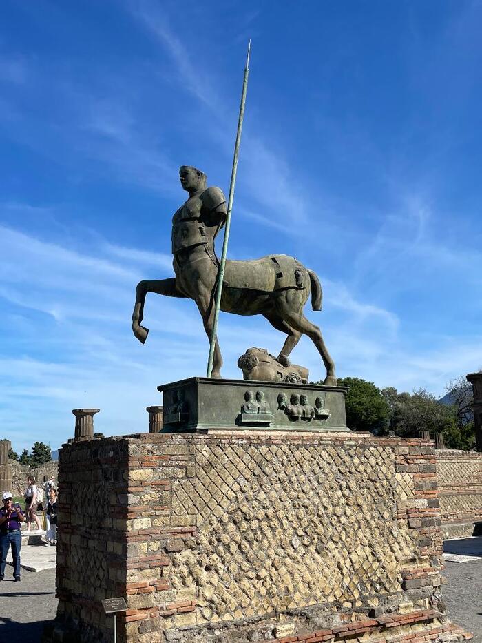 И поездка того стоила – на смотровой площадке над Marina Grande, оторвав взгляд от моря и повернувшись к материку я замер, не поверив своим глазам. «Здравствуй, соотечественник, не ожидал меня встретить?» Не буду врать, не ожидал. И хоть в жизни мы не встречались, но узнал тебя по широкополой шляпе и усам. Сомнений быть не могло - на меня смотрел большой пролетарский писатель Максим Горький.И точно, читал где-то, что предпочитал он морской прибой и мягкий климат Италии пожару мировой революции, хоть и был её официальным глашатаем.После неожиданной встречи с такой глыбой как Горький, Помпея окончательно разрушилась, но уже в моём сознании. Глядя на руины некогда великого города, я понял, что граждане далёкой цивилизации жили хорошо – дома из камня, широкие дороги со стоками для воды, бесплатная еда, по праздникам – вино. Для желающих - лупанарий с ассортиментом позиций на выбор – помпейская Кама Сутра.