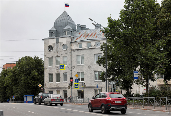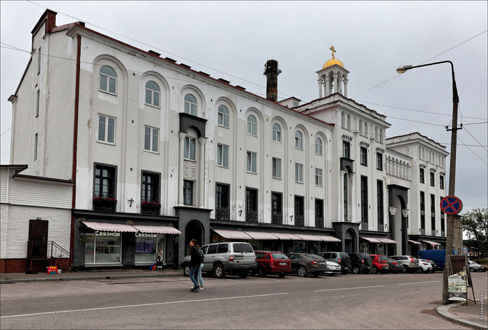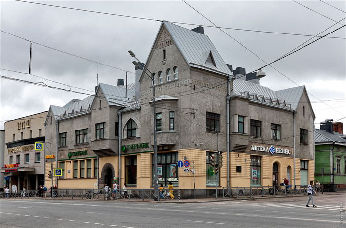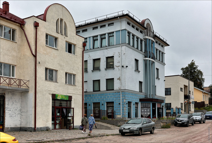 Поскольку через город проходит стрелой лишь ул. Карельская (не считая жд-путей), то так или иначе, возвращаешься на нее. Перехожу в сторону исторического центра. Вокруг - досоветская архитектура, почти каждый дом с именной табличкой.