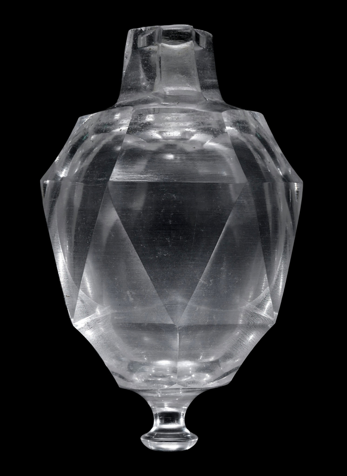 Миниатюрный сосуд, также известный как амфориск, использовался в качестве флакона для ароматических масел. Этот возрастом около 25 г. до н.э.: высотой всего 5,7 см был вырезан из горного хрусталя более 2000 лет назад.