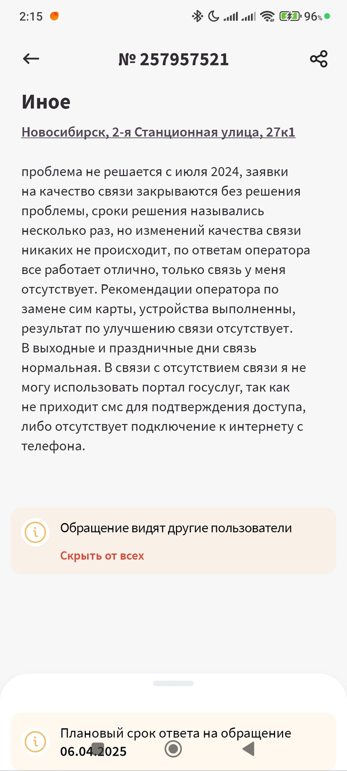 Сколько раз уже порывался сменить оператора и уйти с Теле2, но каждый раз сдерживался, вроде написал гневную хрень в поддержку, вроде проблему закрыли - ну ок, живем дальше. Хотя и так всем понятно, что проблемы не из-за внешних факторов возникли, а из-за самой же нетрадиционно-ориентированной компании Теле2. Как братва в 90-х, один офис создает проблемы, другой смежный - решает их.