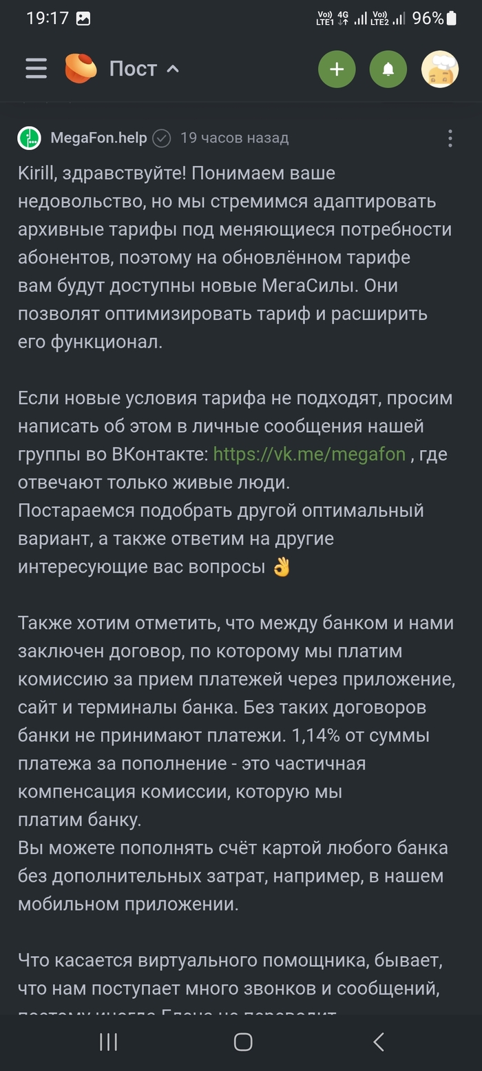 Татьяна уточняет, какие именно не работают. Я называю: маркетплейсы, соцсети, Яндекс.Go. Она создает заявку в техблок. В качестве компенсации предлагает скидку 15% на 90 дней на основной номер, несмотря на то, что у меня групповой тариф. Ну, хоть что-то, подумал я. Заявку создали, обещали разобраться.