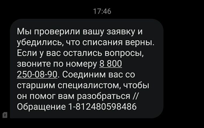 Вы думаете это все? Неа, я позвонил им на горячую линию, через приложение. Оператор выслушал, записал, передал данные дальше и обещал, что мне перезвонят через 2-3ч с решением (Ага, перезвонят на заблокированную от минуса сим карту). Каково, вы думаете решение? Может быть мне сообщили причины, почему так вышло? Может быть объяснили как-то эту ситуацию?