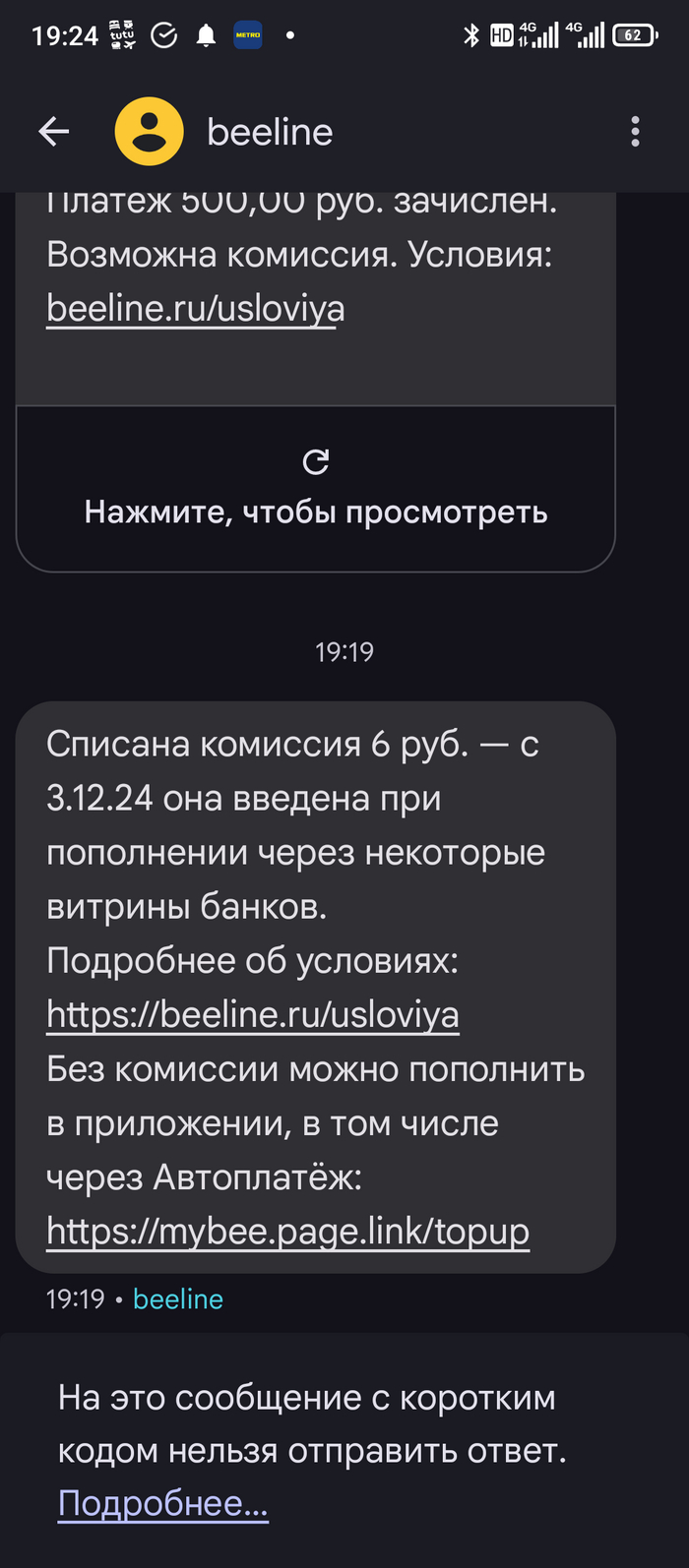 Сколько уже это может продолжаться? То что вы поднимаете оплату, это я ещё понимаю. Когда вы начали ограничивать мне раздачу, оплаченного мною же трафика, и простить за раздачу денег, Я удивился. При чём отчёт трафика у вас не от розданного интернета, а общий. Я использовал некий объем трафика на устройстве, и уже не могу раздать интернет. Но это семечки так сказать. Сегодня Я пополнил себе баланс и Билайн удержал шесть рублей комиссии за перевод, не сбербанк с которого был перевод, а мать его за ногу Билайн, получать платежа. Мой вывод, "вы охуели в край"! И нам с вами больше не по пути. Нужно что то менять в новом году. Чао Буратины!!!
