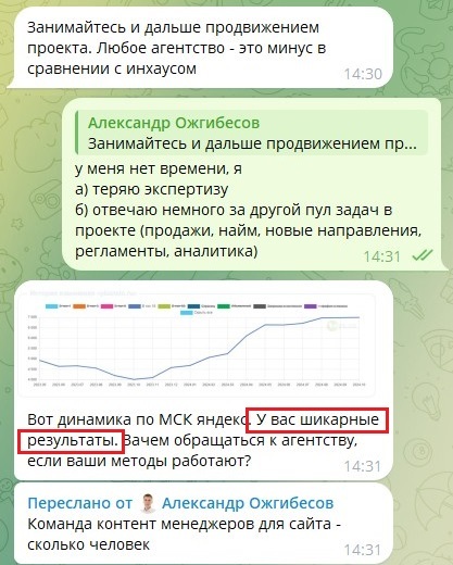 В статье не указано, что помимо этого большого направления по работам с сайтом, также я управляла продажами (штат 3+4+1+2 человека), занималась наймом и обучением в отделе продаж, а также развитием бренда компании и ведением соц.сетей и блога "руками" Ивана.