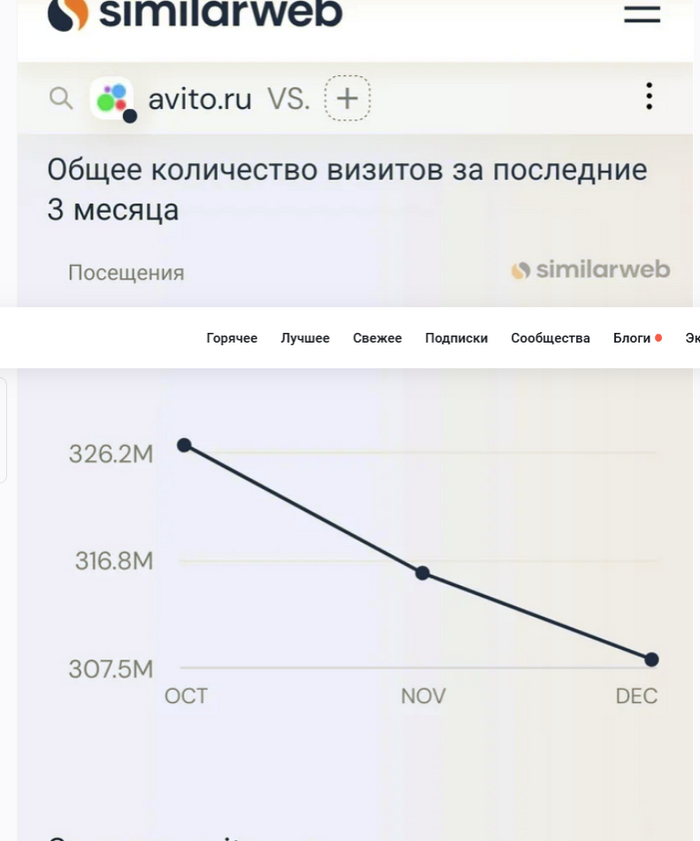 Авито продолжает падать , еще -10% трафика посещений, все из за ужесточения политики модерации, блокировок, сокращения предложений, увеличения цен,
