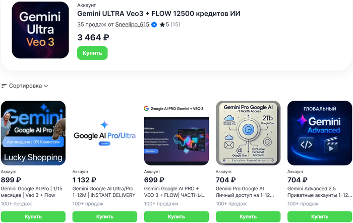 Здесь можно приобрести ключ активации Gemini Google AI Pro (включающую VEO 3), прямую покупку на ваш аккаунт или готовую учетную запись с уже действующей подпиской. Для этого:
