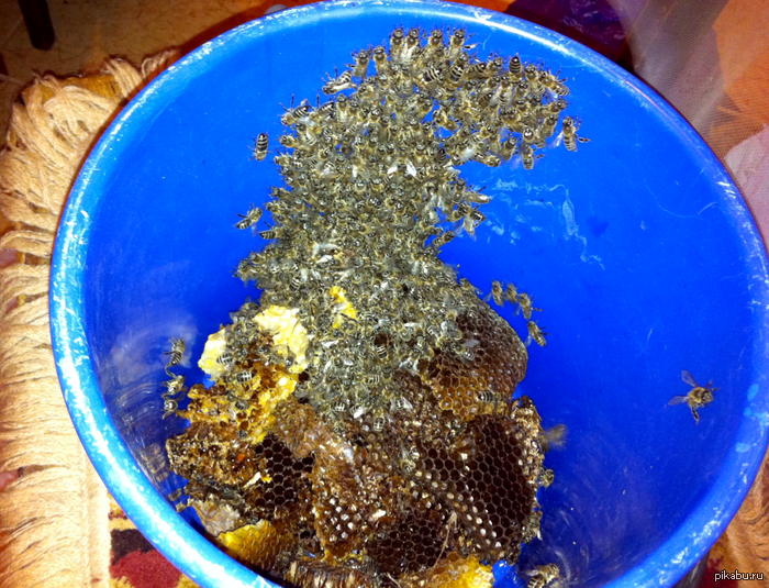248 drivingRain Спасение пчел 12 лет назад Сломалось старое дерево, как оказалось в нем жили пчёлы, отец всех спас, так как ночью они замерзнут. Приятно и мило жужжат) Будем строить им дом:) [моё] Пчелы Улей Соты