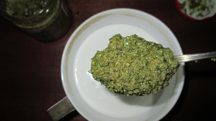Шаг 3. В дело вступает песто. Конечно, могла бы соврать, что готовила его сама, но нет – взяла в магазине. 😂 Всё равно аромат шикарный, добавляю его к креветкам, перемешиваю – и начинается настоящая магия.