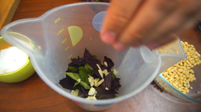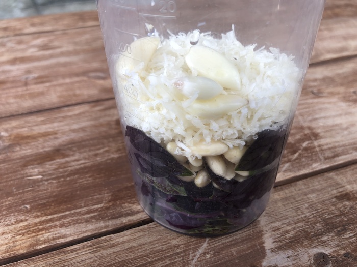 2. Пучок зеленого базилика. Зеленого нет, в огороде только красный растёт. И красный сгодится. Это же Песто по-тульски.