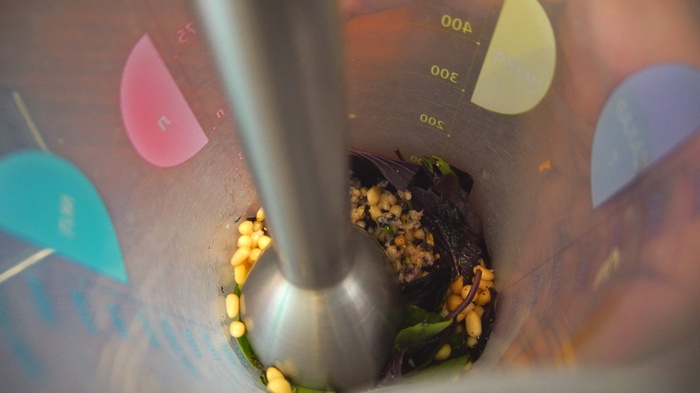 Блендер в руки и пытаюсь превратить это в соус. Скажу честно, сначала получился марципан. Пришлось раза три доливать масло, чтобы соус стал похож на соус. В итоге ушло грамм 200-250 масла.