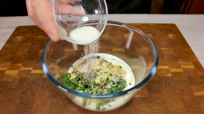 1 порция соуса (заправка) ранч с голубым сыром (100 гр. голубого сыра), (добавить 3 ст.л. нарезанного свежего укропа, 3 ст.л. нарезанной свежей петрушки, 2 ч.л. паприки) (150-200 гр. отложить на коулслоу)