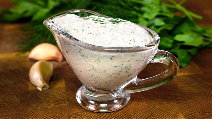 150-200 гр. соуса (заправки) ранч с голубым сыром