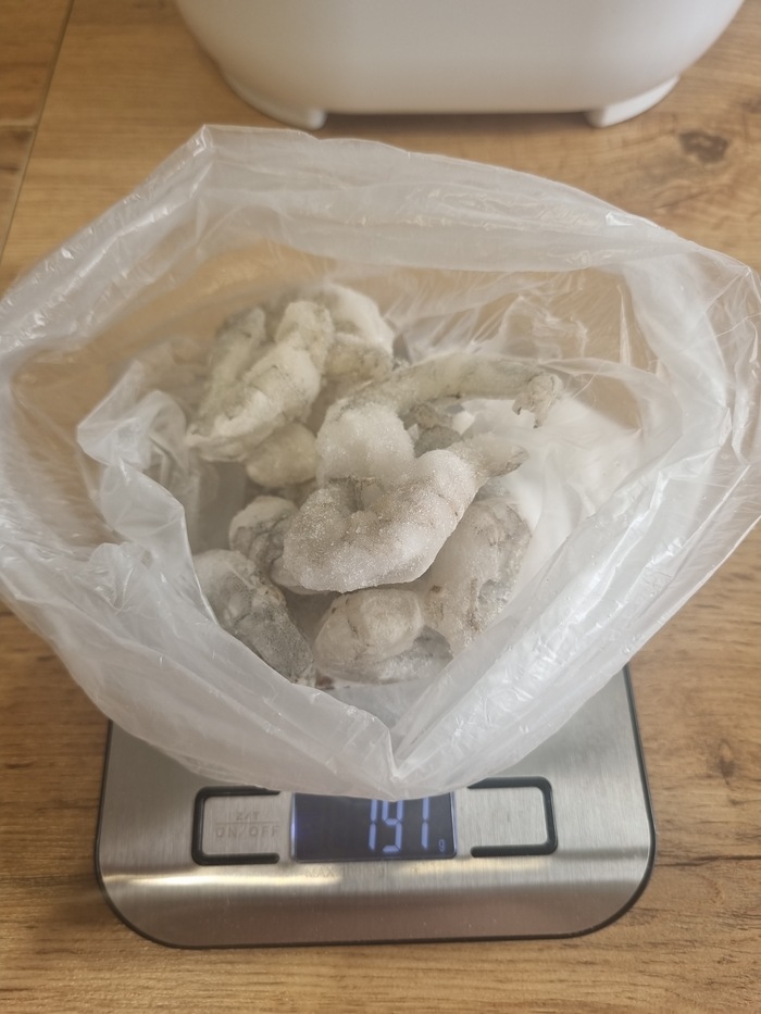 В это время почистим лук и чеснок, поставим креветки на оттайку.