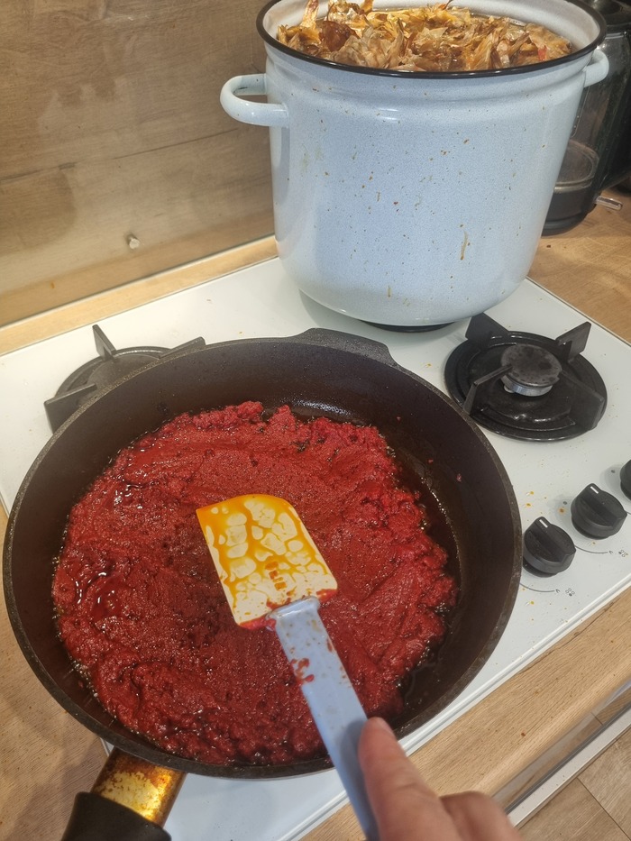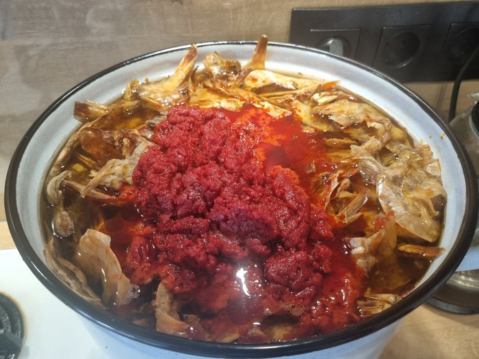 5,5 кг мощнейшего соуса биск, отправляются в заморозку.