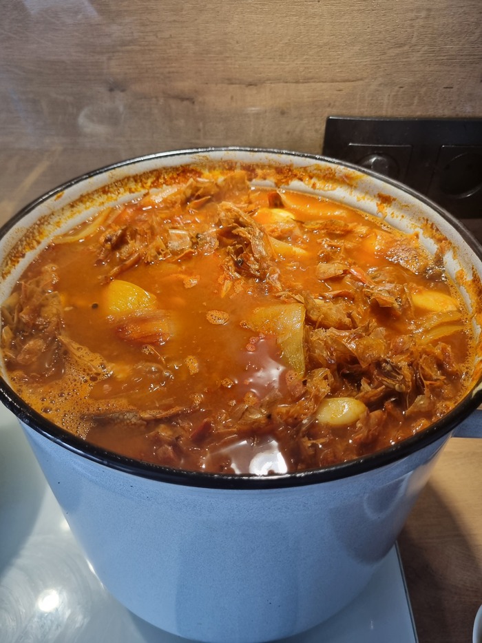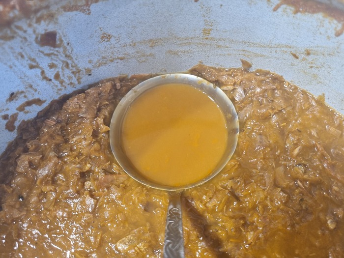 Когда я процедил готовый биск, я вскипятил его еще разок и оставил остывать.