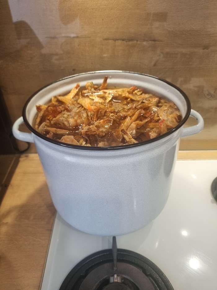 Как итог, только часть панцирей хорошо пробилась, но вкус получился достаточно насыщенным, поэтому я прекратил издеваться над блендером, который дико грелся.