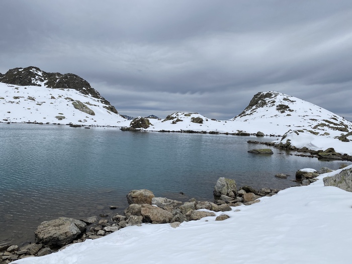 А нас ждал красивый и легкий маршрут, как обещал интернет – и не просто какой-то матрасник, типа нас, а уважаемый портал одного крупного туристического магазина, в котором мы регулярно оставляем кучу денег за экипировку, между прочим. Экспертный уровень. Выходишь от места ночевки налево и наискосок, мол, просто снижаешь высоту, по дороге смотришь еще три озера, два водопада и альпийские луга.