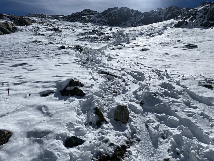 И правильно. С направлением движения стало проще: из Сапожка вытекал ручей Гаммеш-чат, вдоль которого нам надо было идти вниз. А вот с самим движением – не очень. Вдоволь поперелезав через камни, мы вышли на бараньи лбы – крутые круглые скалы. И как тут вниз?