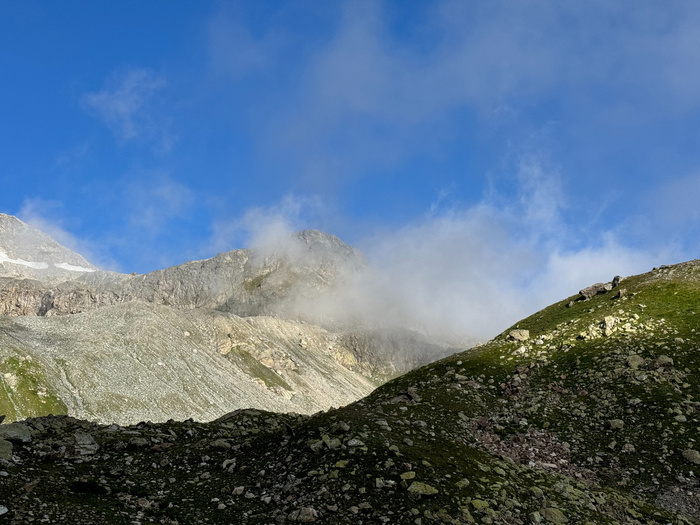 А дедуля, кстати, с горы исчез. Навстречу нам он не спускался. Дальше идти вдоль хребта без снаряжения невозможно. Куда делся? Иногда мы думали: а был ли мальчик? Может, от разреженного воздуха у нас коллективная галлюцинация приключилась?