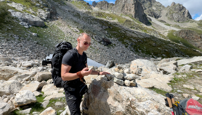 Вдруг Алеша, который на ходу снимал какую-то очередную красотищу, поскользнулся на осыпном участке.