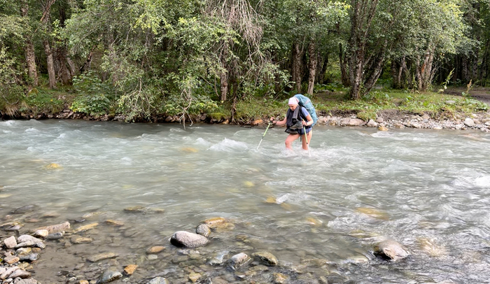 Алеша ступил в воду. Шаг. Второй. С одной полноценной палкой. Вода дошла ему до колен. Вот он уже перешел середину. Вот ближе к тому берегу. Отлично! Он на месте! Моя очередь. Хорошо, я так устала, что не думала, а делала. Штаны – на шею, ботинки – туда же. Первый шаг обжег холодом и освежил одновременно. Камни оказались не очень скользкими. Палки здорово выручали – подогнись, сложись, да просто скользни одна – и я вместе с рюкзаком гребу в ледяной воде. Не думай, иди. Вода до середины бедра. Затем мельче. И вот – последние шаги. Есть!
