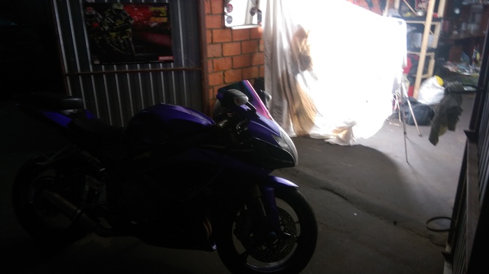 При очередной съемки мото обзора, когда за место софт бокса была тупо натянута простыня между источником света и объектом съемок.