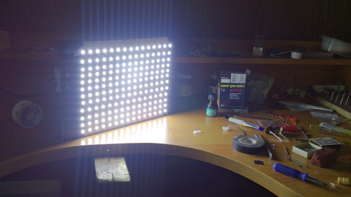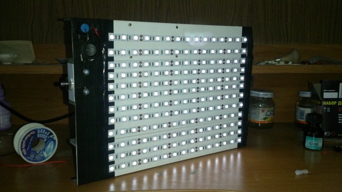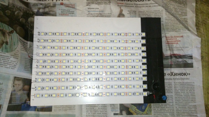 Наклеил 12 лент по 25 см. Тип светодиодной ленты у меня SMD 5050 в ней 60 свд на 1 метр мощность 14 вт