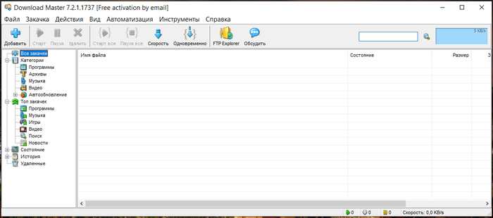 7. Некогда лучший менеджер для докачки файлов - Мастер подсоса ака Download Master. Умеет работать с ytdlp, для закачки видосов с ютуба, но сам гугл борется с этой приблудой, да и наши законотворцы закрыли доступ к ютубу, поэтому, в наших реалиях, данный плагин не работает.
