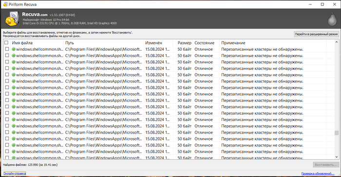 6. Рекава ака Recuva. Некогда неплохая прога помогавшая, в моменте восстановить файлы в ещё не затёртых кластера. Я юзаю старую версию и после того, как рекава перешла в руки говноделам из ЦЦклинер хз чего с ней стало, но вроде работает.