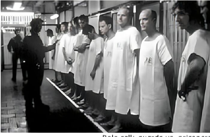 Вообразите: 24 студента, прошедшие кастинг по здоровью, что похвально. Как актеры в реалити-шоу, случайным образом делятся на "плохих" и "хороших". "Плохих" арестовывают прямо дома, как в боевике, везут в импровизированную тюрьму в подвале университета и превращают в бесправных заключенных. Они были подвергнуты унизительным процедурам: их обыскивали, раздевали, выдавали тюремные робы и номера.