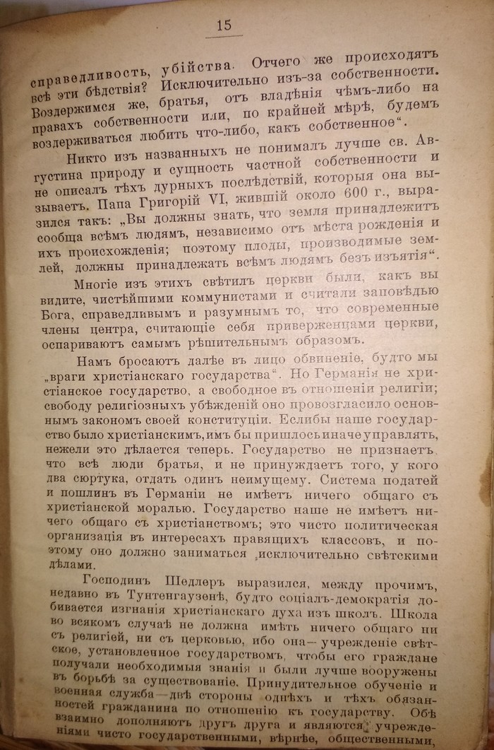 Военные (1914—1918) годы — это период «гражданского мира» между классами, когда пролетариат, руководимый социал-демократией, отказывается от самостоятельной классовой политики, когда он свои интересы подчиняет интересам защиты своего «отечества». Империализм торжествует по всей линии, он победил социализм, он подчинил его своей не только материальной, но и духовной власти. Империализм выступает в качестве бесспорного вождя нации, его идеология побеждает, пропитывает собою все идеологии, — за одним только исключением: большевизм, коммунизм не делает ни единой уступки империализму. Но большевизм в этот период — еще идея, не овладевшая массами и, следовательно, не ставшая силою в исторической борьбе.